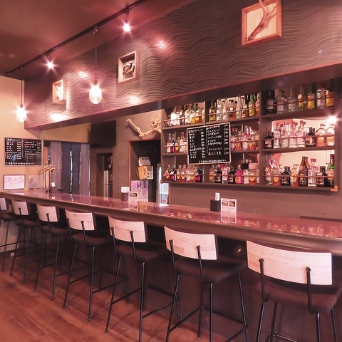 落ち着いた雰囲気のカウンター席は、お一人様や少人数でのご利用に最適。ゆっくりと食事とお酒を楽しめる大人の空間です。