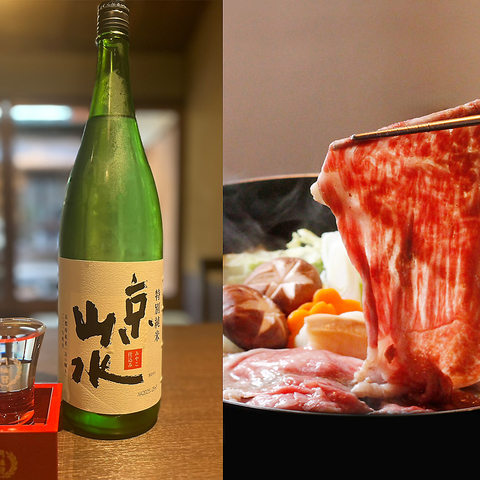 厳選されたA5黒毛和牛の極上の旨味を最大限に引き立てるため、甘辛いすき焼きの繊細な味わいに深みとキレを与える京都の地酒を厳選して豊富に取り揃えており、その最高の相性が、京都ならではの美食体験を格別なものへと昇華させます。至福のペアリングをぜひお愉しみください。