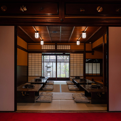 180年前の建具を一部残した店内には、「おくどさん(かまど)」や、「坪庭」が配され、当時の趣がそのままに、歴史を感じさせる懐かしさの中にも洗練された雰囲気が広がるやすらぎ空間となっております。