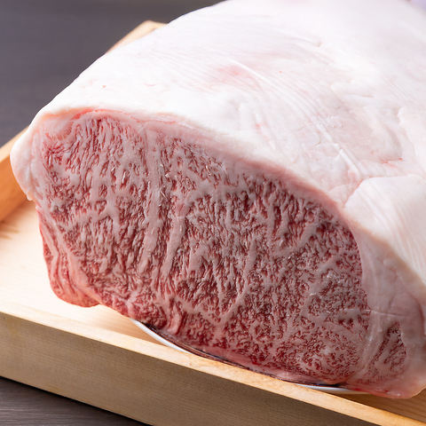 A5ランク近江牛の原木を店舗でスライスしてご提供しております。