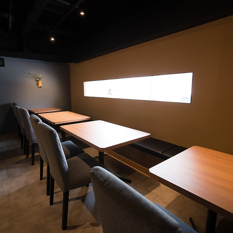 テーブル席は、4人掛け×3(うち1つは半個室風)と2人掛け×2(結合可)をご用意し、最大12名様までご利用いただけます。各テーブルから炉端が見えるので、焼き上がる美味しそうな海鮮を目の前で楽しめるライブ感が魅力です。友人や家族との集まりに最適な空間で、落ち着きのある電球色の照明が心地よい雰囲気を演出します!