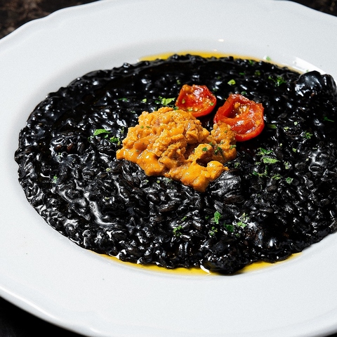 濃厚なウニの旨みが、真っ黒なイカスミリゾットに贅沢にとろける一皿。甘酸っぱいセミドライトマトが味に奥行きを加え、ひと口ごとに海の香りと旨みが広がります。見た目のインパクトも抜群で、思わず写真を撮りたくなるビストロの逸品。