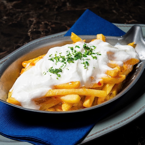 外はカリッと中はホクホクのフライドポテトに、ふわとろ食感のエスプーマソースを贅沢にトッピング。ピリッと甘辛いエスニックチリソースがアクセントになり、クセになる美味しさ。見た目も味もインパクト抜群な新感覚ポテトです!