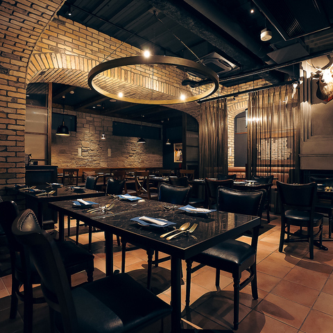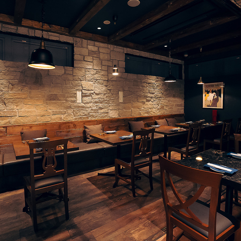 【大人の隠れ家ダイニング】落ち着いた雰囲気の店内は、ゆったりとした大人の時間を過ごせる上質空間。気軽に利用できるテーブル席を多数完備し、デートや記念日のお祝い、女子会にも最適です。非日常を感じながら、特別なひとときをお楽しみください。