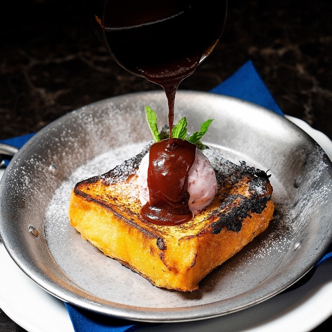 外はカリッと香ばしく、中はとろけるようにふわふわ。ブリオッシュを使用した特製フレンチトーストに、温かい生キャラメルソースをたっぷりかけて仕上げました。甘さの中にほんのりビターなコクが広がる大人の味わいで、バニラアイスとの相性も抜群。食後のデザートはもちろん、カフェタイムのご褒美スイーツにもぴったりな一皿です。