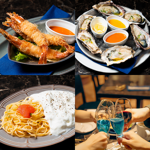 ふわとろクリームパスタや香ばしいエビカダイフ、新鮮な生牡蠣など、五感で楽しむビストロ料理が揃う横浜のおしゃれ居酒屋。女子会・誕生日・デート・夜宴会にぴったりな個室空間で、ワインやカクテルを片手に乾杯。華やかな見た目と贅沢な味わいで“特別な夜”を演出します。忘年会にもオススメな飲み放題付きコースも