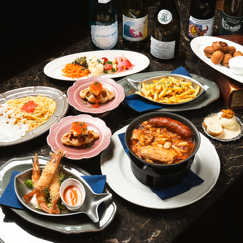 ディナーでは、じっくり煮込んだお肉料理メリメロや新鮮な牡蠣など、本格ビストロをお楽しみいただけます。ワインやクラフトビールとの相性もバツグン◎大人の贅沢なひとときを演出いたします。コースは2時間飲み放題付きで4500円~