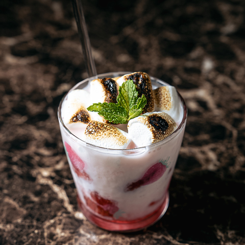 苺を贅沢に使ったオリジナルドリンクや、香り豊かな6種の紅茶が楽しめるカフェタイム。店内で焼き上げるふわふわベビーカステラや生キャラメルのフレンチトーストと一緒に、ゆったりとした午後のひとときをお過ごしください。