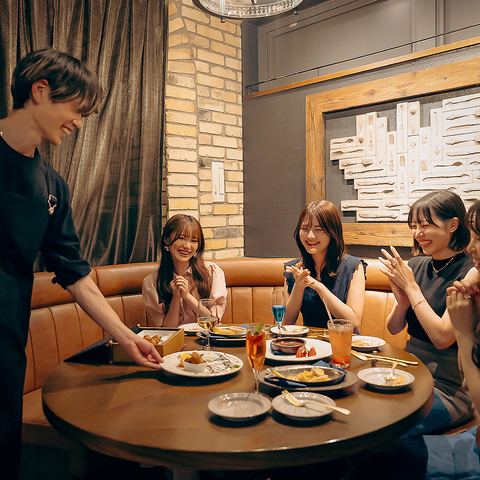 洋風居酒屋×ダイニングバーの上質空間。半個室で周囲を気にせず宴会を楽しめ、飲み放題付きプランも豊富にご用意。貸切でのパーティーや歓送迎会にも対応可能。おしゃれなインテリアと温かみある照明で、大切なひとときを華やかに演出します。