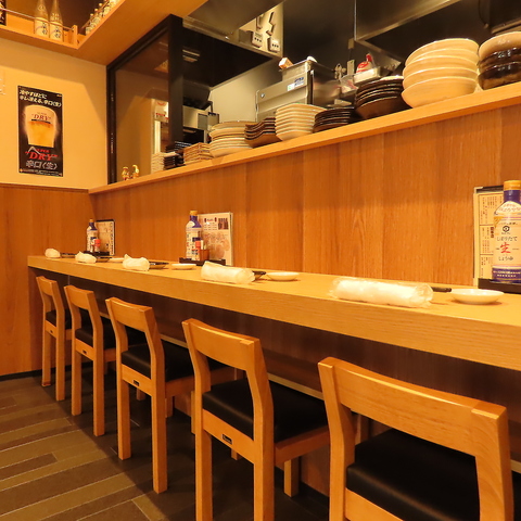 【お一人様も大歓迎】5席あるカウンター席は職人の技を間近でご覧いただける特別な空間。スタッフとの距離も近く、温かいおもてなしを感じらる臨場感溢れる特等席!新鮮な海の幸を使った料理や、こだわりの一品を目の前で仕上げる様子を見ながら、特別なひとときをお楽しみいただけます。お得なクーポンも併せてチェック♪