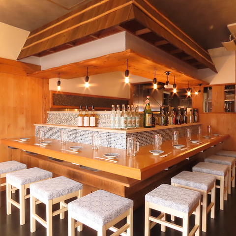 木の温もりと漆喰の柔らかさが和やかな雰囲気をつくり出し、打ちっぱなしのコンクリートの天井がスタイリッシュさを演出する店内。和と洋が調和し落ち着いた照明の下、ゆったりとした時間を楽しむことができます。デートや女子会にもぴったりの居心地良い空間です!テーブル席や掘りごたつ席、カウンター席もあり貸切にも対応しています◎