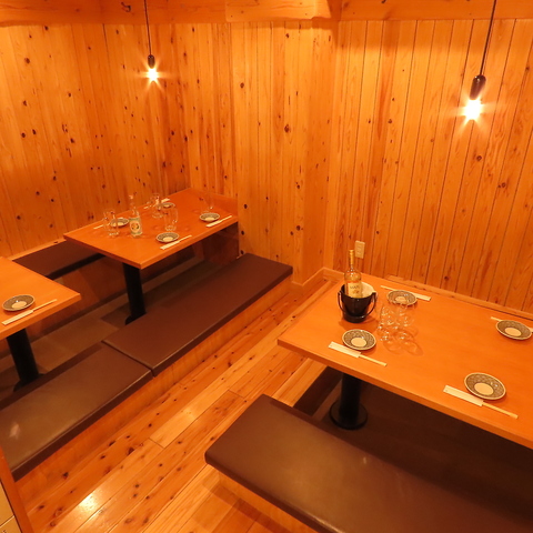 木の温もりと漆喰の柔らかさが和やかな雰囲気をつくり出し、打ちっぱなしのコンクリートの天井がスタイリッシュさを演出する店内。和と洋が調和し落ち着いた照明の下、ゆったりとした時間を楽しむことができます。デートや女子会にもぴったりの居心地良い空間です!テーブル席や掘りごたつ席、カウンター席もあり貸切にも対応しています◎
