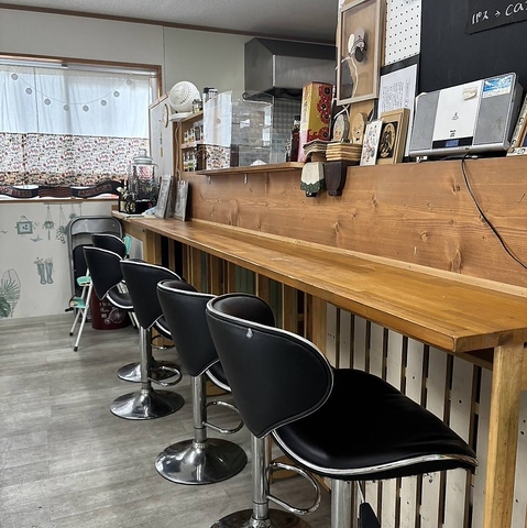 ゆったり深めに座れるカウンター席あります。お一人様の方も入りやすいです♪デートやお友達同士でも◎ランチメニューやドリンクメニュー、お酒も充実しているので、昼夜問わず立ち寄れます。毎日通いたくなるような、どこかホッとするお店です。ご来店お待ちしております★