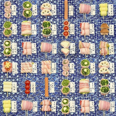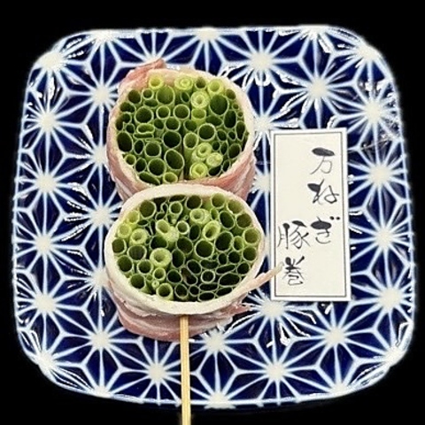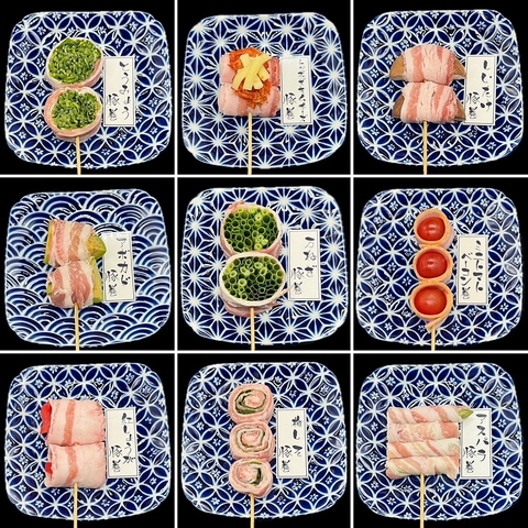 厳選された新鮮な野菜を豚肉で巻いた人気の"野菜巻串"の数々は毎日手作りで串打ちした自慢の1串!野菜の甘みと肉の旨味が絶妙にマッチし、見た目も彩り豊かで食欲をそそります。万ねぎ豚巻、梅しそ豚巻、アボカド豚巻、すき焼き豚巻、紅しょうが豚巻など全15種類以上。巻串盛り合わせもご用意。