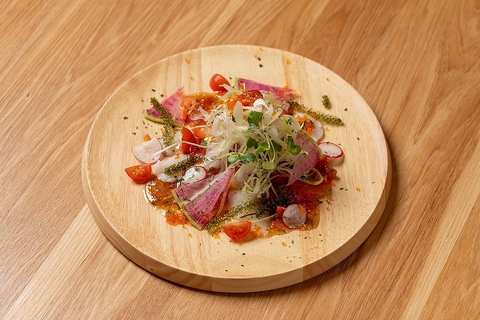 新鮮な素材が織りなす美しい逸品。魚介の旨味を最大限に生かした和風スタイルで、ソースが味を引き立てます。色とりどりの盛り付けで、見た目の美しさと味の深さ、両方を兼ね備えた料理です★