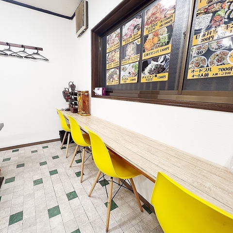 【カウンター席/ランチ♪】リラックスできる店内には、テーブル席に加え、気軽に利用できるカウンター席も4席ご用意。ランチタイムは、お一人様でもふらっと立ち寄りやすく、手軽に本格韓国料理が楽しめます。どなたでも過ごしやすい空間で、日常の食事から特別なひとときまで、幅広くご利用いただけます。