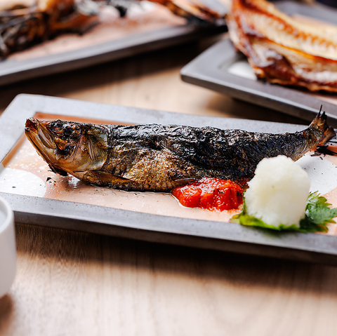 名物の炉端焼きはライブ感満載!大とろいわしや大海老など海の幸をじっくり香ばしく焼き上げました。