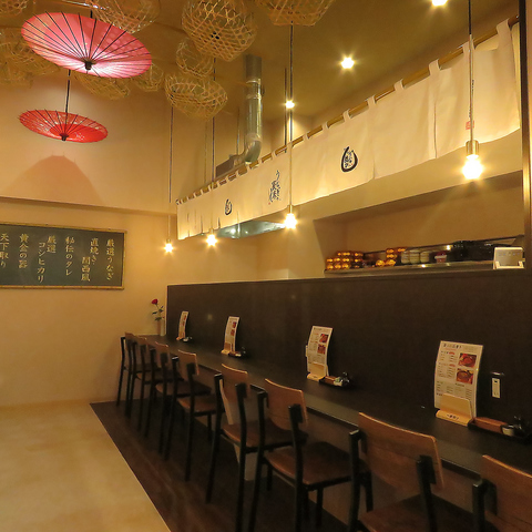落ち着いた雰囲気の中で、和のテイストを感じられるお店です。温かみのある木のテーブルや優しい照明に包まれた空間は、心地よい食事の時間を提供します。料理へのこだわりが表現された壁面は、友人や家族との楽しい会話を引き立ててくれます◎ぜひ当店で贅沢な時間をお過ごしください。