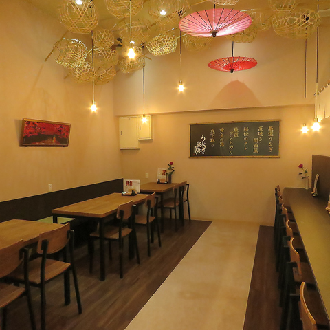 カウンターでうなぎを食べられるのが[うなぎの寝床]調理の音や香りに心を寄せ、五感を研ぎ澄ませながらお食事をお楽しみいただけます。木目調の店内が、ゆったりとした食事の時間を演出しており、お一人様でも気兼ねなく寛げる空間です。お客様のご来店を心よりお待ちしております。