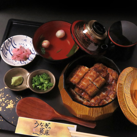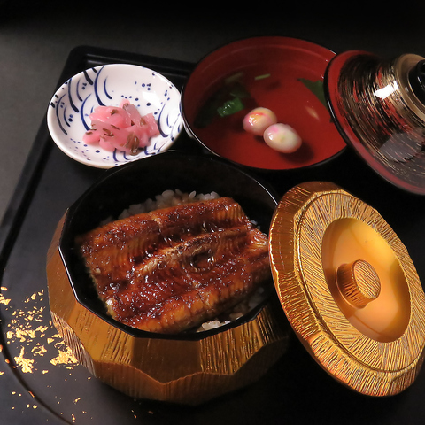 職人が丁寧に焼き上げたふっくらとした鰻が贅沢に盛り付けられています。まずはそのまま、次に薬味を添えて、最後は出汁をかけて楽しむこともでき、飽きることなく存分に味わえるのが魅力的な逸品です。お吸い物や漬物とともに、心温まる贅沢なお食事をぜひご満喫ください。