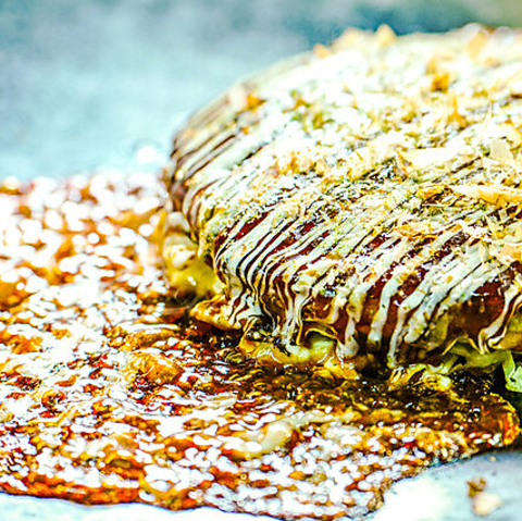 食感が濃厚でキメ細かく、ナガイモの中で最も粘り気が強い大和芋を使用したお好み焼きは、軽い食感で何枚でもパクパクと食べられちゃう美味しさ!中でも魚介や牛スジなど10種類の具材をふんだんに盛り込んだ“高はしデラックス玉”はオススメの一品です。