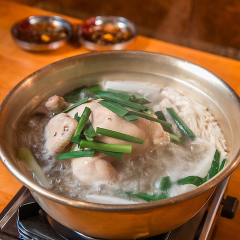 まるごと鶏を煮込んだ「タッカンマリ」は、韓国の家庭料理を再現した看板メニュー。ニンニクだれや自家製の特製たれは数種類から選べ、好みに合わせて楽しめます。初めての方も安心できるよう、スタッフが食べやすくカットして提供してくれるのも嬉しいポイント。通常サイズに加え、気軽に試せるハーフサイズもご用意。