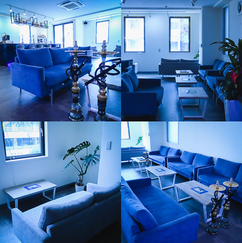 当店は全席ソファー席。仕事の捗るボックス席で作業をしながらシーシャもお楽しみいただけます。晴れている日は自慢のテラス席で過ごすのも◎デートや女子会や商談でも使える個室のVIP席等がございますので、ご利用シーンに合わせてお使い分けいただけます。