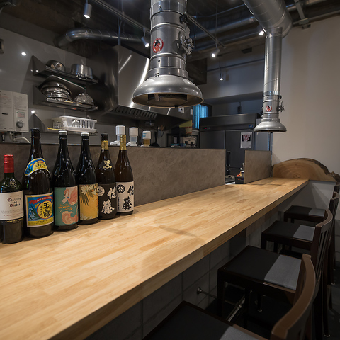 お一人様利用も大歓迎!カウンター席が12席、4名掛けのテーブルを1つご用意している店内となっています。仕事帰りにおいしい海鮮やお肉が食べたくなった際はぜひ、当店にお立ち寄りください。店主が厳選したお酒とともにお客様をお出迎え致します。