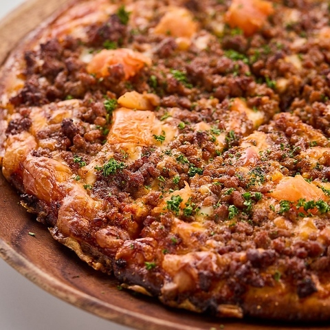 自家製タコスミートをたっぷりトッピングしたピリッとスパイシーなメキシカンテイストが楽しめる、絶品ピザ