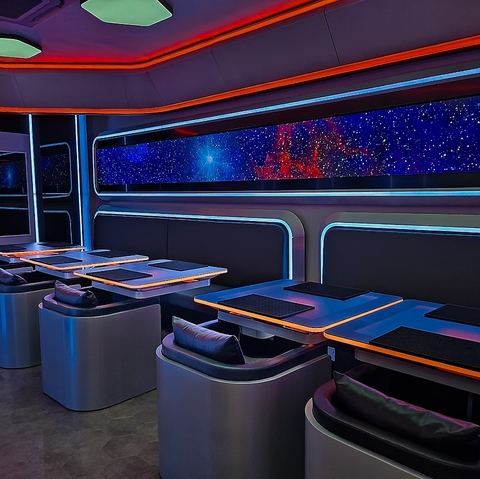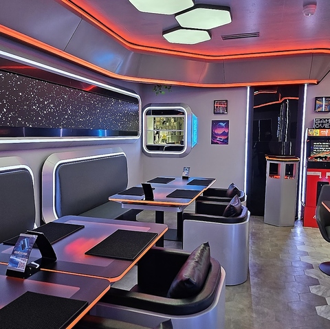 宇宙船をテーマにした内装で、まるで宇宙の世界に迷い込んだかのような非日常空間!友達との食事やデートにも最適で、SNS映えするスポットがいっぱい◎美味しい料理を楽しみながら、特別な体験を味わうことができます!外国人も多く訪れ、異国情緒が漂う国際的な雰囲気を楽しめます。素敵な時間をお過ごしください!