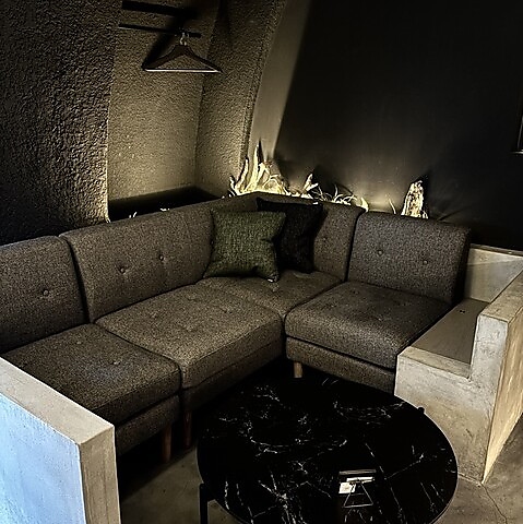 落ち着いた照明に包まれたソファー席。ゆったりとした座り心地で、会話もお酒も心地よく楽しめる癒し空間。