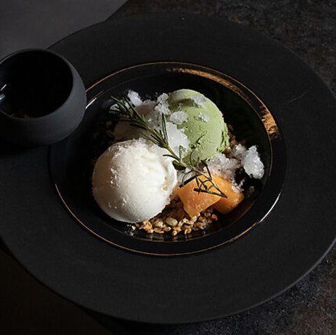 北海道で職人が手作りするジェラートGELATERIA GELABOの抹茶とバニラをマリアージュ。