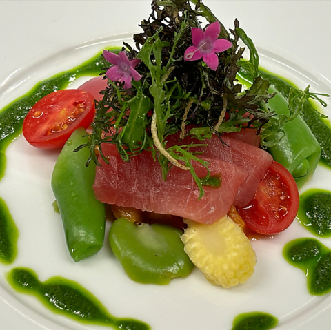 【コース内容】・一口アミューズ・三崎漁港より鮮魚と鎌倉野菜のオードブルなど・鎌倉野菜のスープ・本日のお任せお肉料理又は鮮魚のソテー・本日のデザート (濃厚クリームチーズのプリンとアイスクリーム)例・珈琲又は紅茶