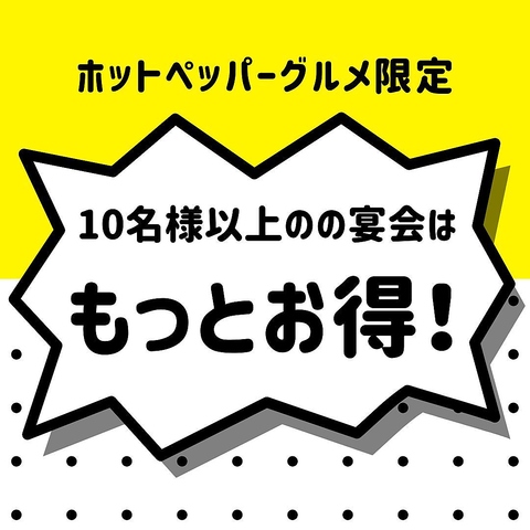 幹事様必見!!10名様以上でのコースのご予約で、幹事様(おひとり様)分無料にさせていただきます♪そのままでもお得な内容のコースがさらにお得にお楽しみいただけます!10名様以上でのご宴会の際は是非ご利用ください☆※予約時&入店時にクーポンをご提示ください