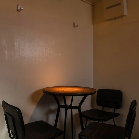【ダークな店内空間】白と黒を基調とした落ちついた雰囲気の店内空間。カウンター席では店員との会話を楽しみながら、テーブル席ではご友人との会話をゆったりとお楽しみいただけるお店です。