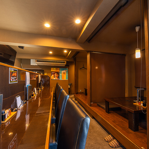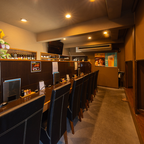 仕事帰りのサク飲みに最適なカウンター席です。お気軽にお立ち寄りいただき料理やお酒を存分に楽しめる席です。