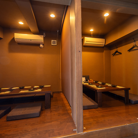 のんびりと寛げるお座敷席を複数ご用意しています。足を伸ばしながらリラックスしてお楽しみください。