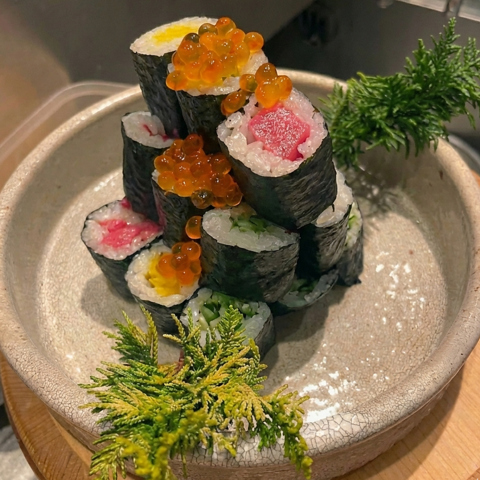毎朝豊洲で目利きした鮮魚を仕入れ、熟練の技で握る「本格江戸前寿司」。シャリは農家直送の厳選米を、無添加酢を使用したシャリ酢で仕上げています。ネタとシャリが織りなす極上のハーモニーを、九州の甘口醤油と共にお楽しみください◎
