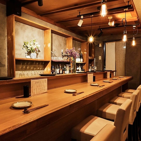 焼鳥ベクトルの店内は、料理と同じく「上質さ」と「心地よさ」にこだわった空間づくりが魅力。木の温もりを基調とした洗練された内装は、肩ひじ張らずに寛げる落ち着いた雰囲気を演出。焼鳥とワインの美味しさを、空間までもが引き立てる、そんな、記憶に残るひとときをお届けします。