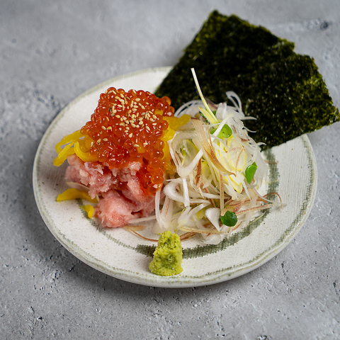 その日水揚げされた新鮮な魚介を、職人の目利きで厳選。三崎港・銚子港より直送される鮮魚を使用したお刺身は、どれも鮮度抜群で、魚本来の旨みととろけるような食感が堪能できる一皿です。お刺身の内容は日によって変わるため、訪れるたびに異なる味わいを楽しめるのも魅力のひとつ。脂の乗った旬魚や、希少な地魚などご提供します。
