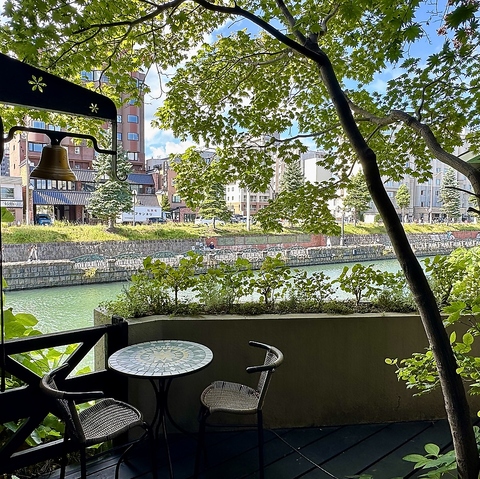 テラス席からは小樽運河を眺める事ができます。気持ちの良い浜風を感じながら特別なひと時を。(夏季限定)