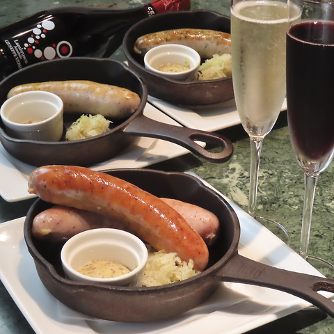 コダマ自家製の大きくて噛み応えや風味も豊かなこだわりのソーセージ!5種類の味からお選びいただけて、1本1本がボリューミーなソーセージとなっております!相性抜群なザワークラフトもついており、ワインやビールともよく合います♪これから飲み会等待ち合わせや0次会にもおすすめの一品です!