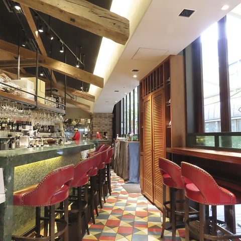【おひとり様からもお気軽にご利用いただけるハイカウンター♪】完全禁煙でどなたでもふらっと立寄って楽しめるお店となっております。本格バルの雰囲気の中、こだわりのコダマ自家製ソーセージやピクルス、ランチメニュー等お楽しみいただけます。