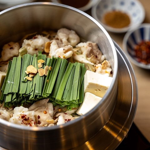特製味噌を贅沢に使用した、濃厚でコク深い味噌出汁が自慢のもつ鍋!辛さと痺れがクセになるスープに、甘みたっぷりでプリプリ食感の国産モツがとろける美味しさ♪一口食べれば、やみつき間違いなし!
