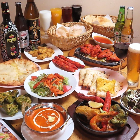 料理のボリュームはもちろんですが、このお値段で3時間飲み放題が付いています!コスパ抜群です。コース内容:パパド/えびせん/ポテトフライ/枝豆/バトマスサデコ/ミックスチャウメイ/プレーンナン/プレーンライス/お好きなカレー1種類(2名様分) ※他チーズタッカルビ食べ放題付き、ローストビーフ食べ放題付きコースなど。