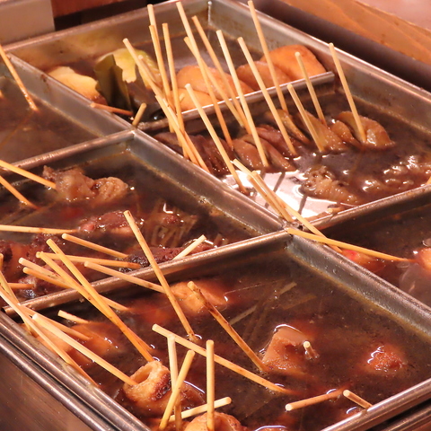 10種類以上の具を煮込んで、味がギュッと染み込んだ静岡おでんをご用意しております♪牛スジ、半熟卵、がんも、黒はんぺん、大根など、これを食べなきゃ始まらない!