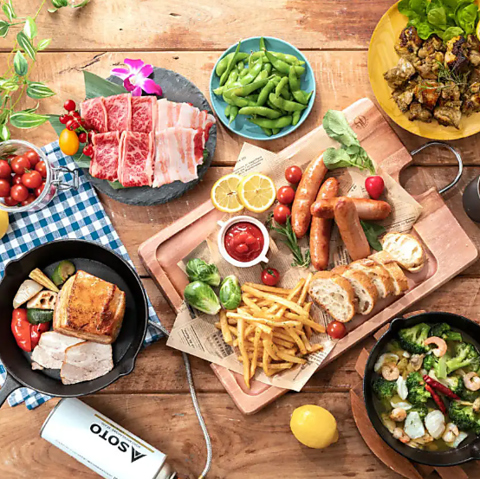 食べ放題プランは通常プランに追加して+600円から、食べ放題飲み放題で、ビアガーデンBBQが楽しめます♪