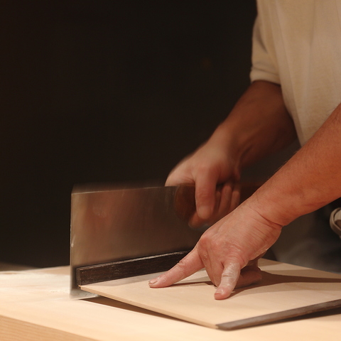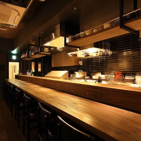 落ち着いた雰囲気が漂うカウンター席は9席のみ。杉を贅沢に使用した高級感あふれる空間で、目の前で繰り広げられる料理の数々を楽しめます。喧騒から離れたビルの3階に位置し、隠れ家のような特別なひとときをお過ごしください。