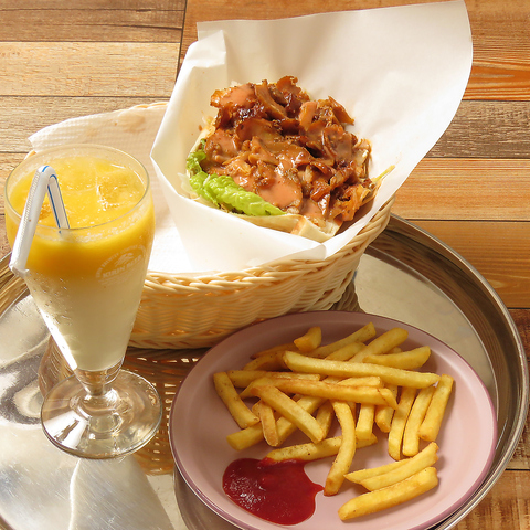 大盛りケバブ+100円(税込)セットにポテトフライ+ソフトドリンク付き