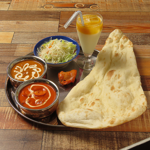 ナンおかわり自由でデザート付きの贅沢コースあります!